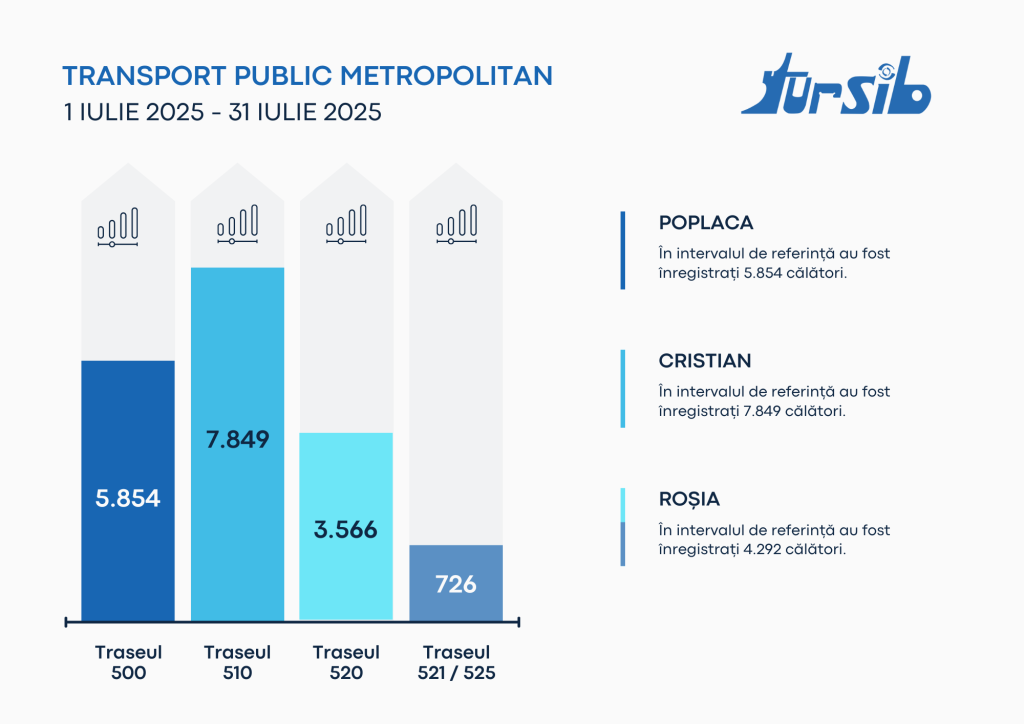 Pentru informații complete privind orarele, traseele, stațiile și tipurile de titluri de călătorie vă invităm să consultați site-ul www.tursib.ro.